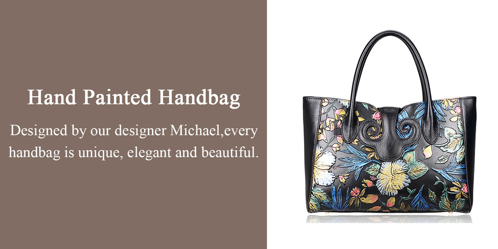 Designed by our designer Michael,hand painted beautiful and colorful floral into the handbag, make you feel as if you are in a beautiful painting. Every floral are hand painted by our craftman one by one, so every handbags will have a little different.