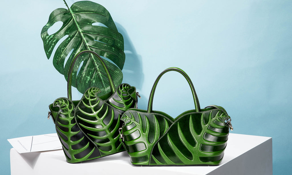 100% Genuine leather with embossed leaf,embossed big leaf in the original wax oil leather to give handbag leaf style and two-color effect and 3 D effect, feel like breathing in the green forest, you can clearly see and feel the leaf veins.